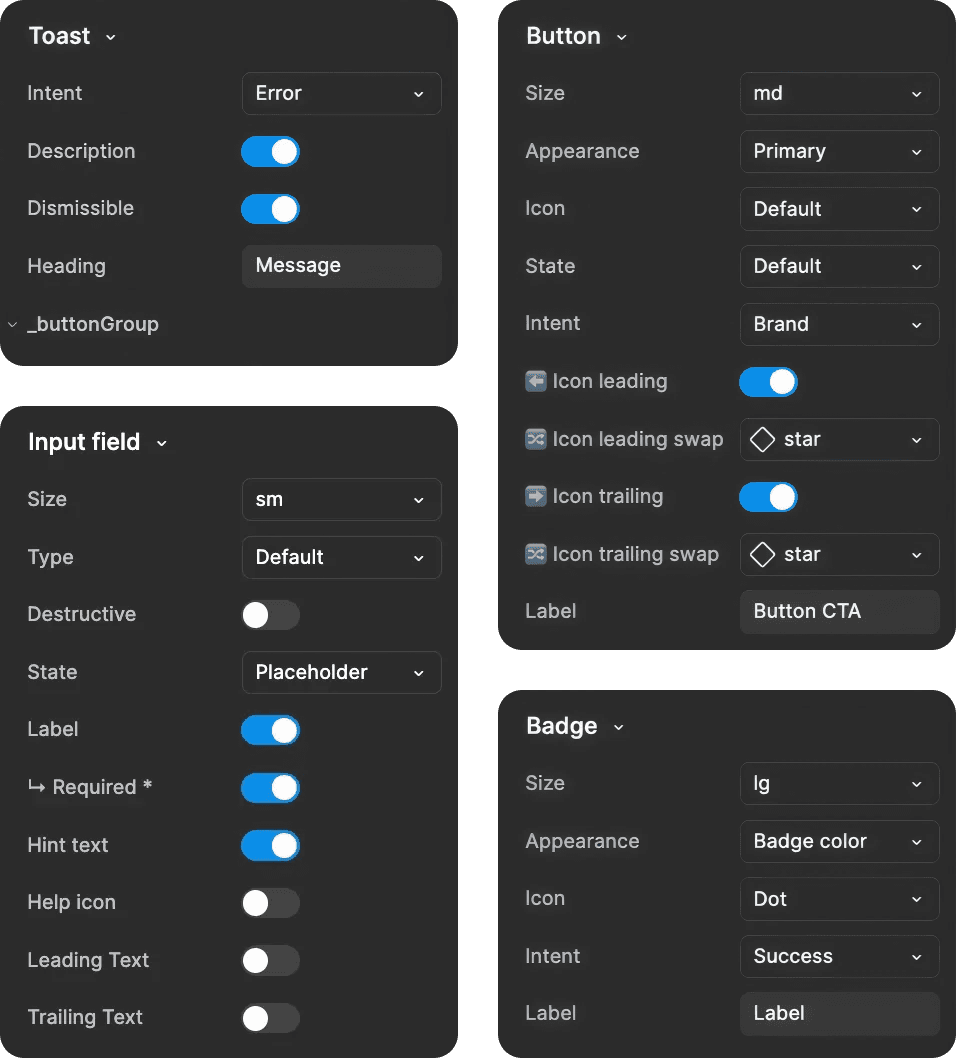We audited internal requirements and collaborated with developers to finalize the component properties so that Figma props and component APIs completely matched.
