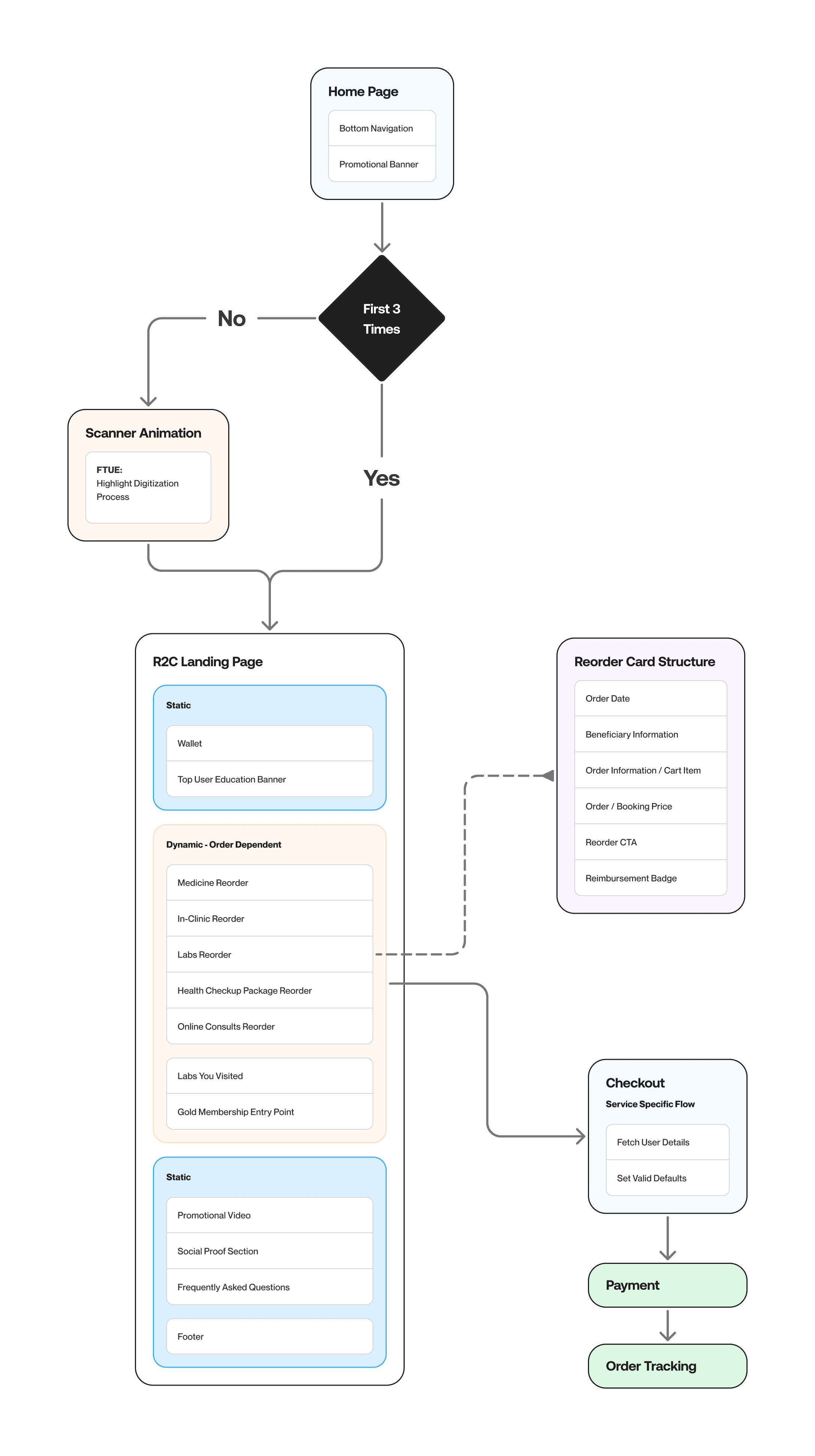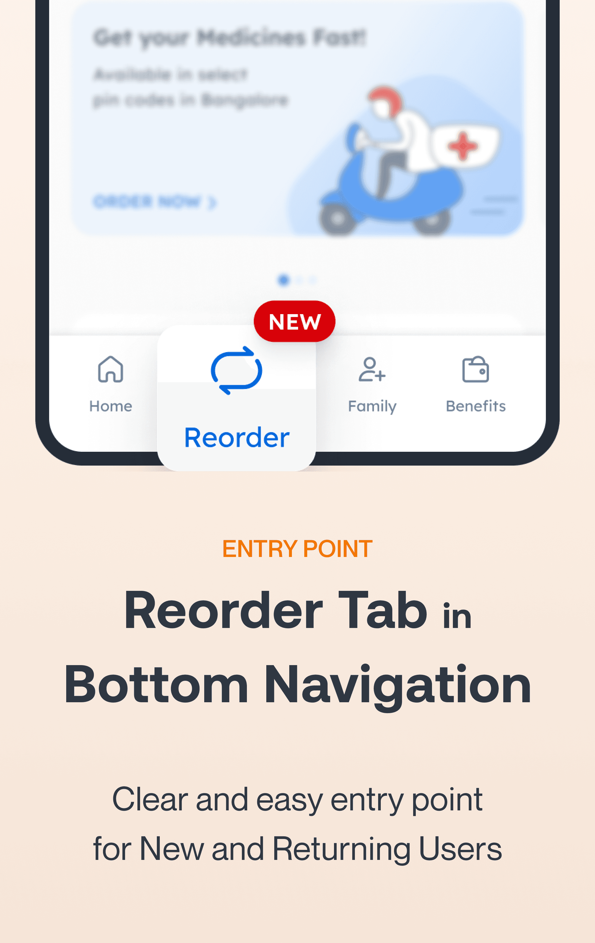 A major opportunity to increase revenue lied in shifting users from reimbursements to cashless payments. Enabling hassle-free reorders became the gateway to changing this user behaviour.