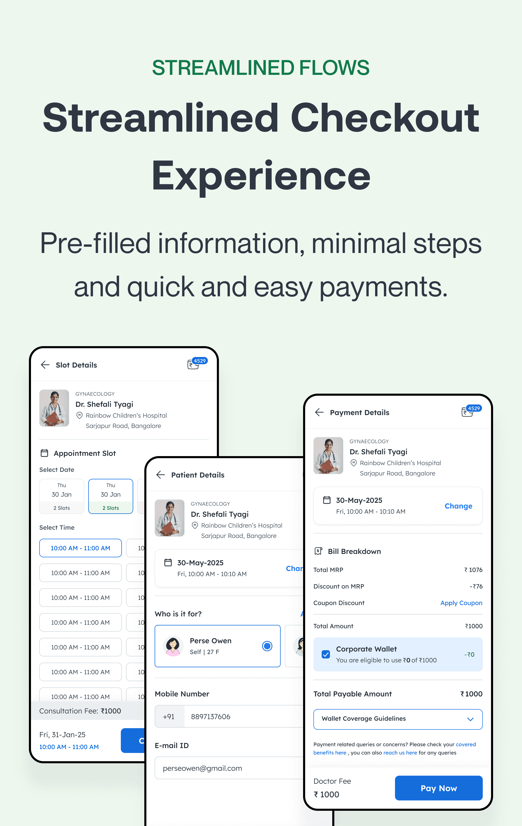 Auto-fill user details (cart items, beneficiary info) to simplify checkout.